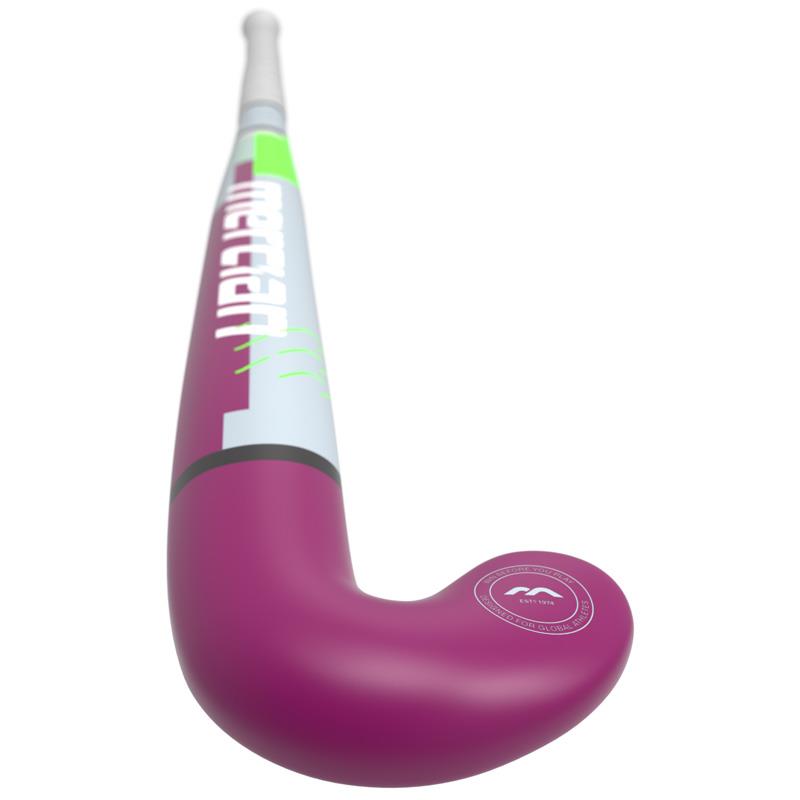 The Mercian Pro Bend incorporates a near maximum 23.5mm bow positioned just below the mid-point of the shaft, approximately 230mm from the bottom of the stick. The shaft has then been shaped to give a thinner pro?le under the right hand and a balance point that favours the head end of the stick. This gives a combination of great stick turn-overdue to the shape but enhanced hitting power because of the balance point and sweet spot. The hitting power is also enhanced because the head is 1.5mm thicker than the Ultimate Bend.